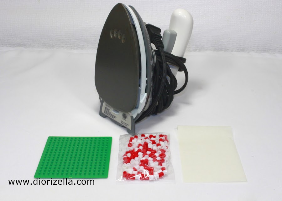 Lo que vas a necesitar es: una plancha, papel de planchar perler beads, tablero de clavijas, 26 perler beads rojos y 25 perler beads blancos.