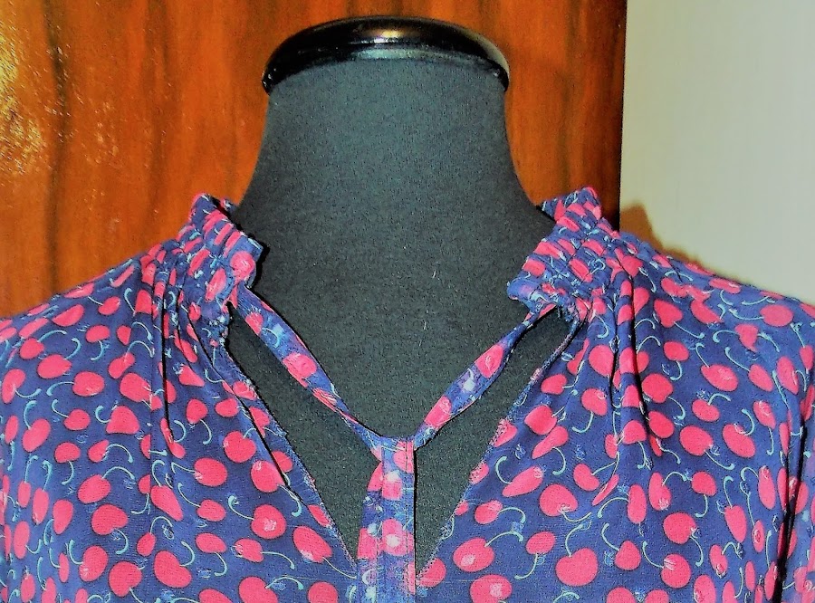 El de talle de la blusa, es el cuello con sus lazos y cuello fruncido. La cartera está terminada con rouloté que ya aprendimos, pero que esta vez lo realizamos con una puntada zig-zag, tipo cordón para ojal.