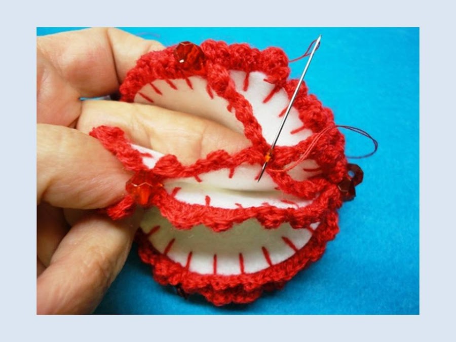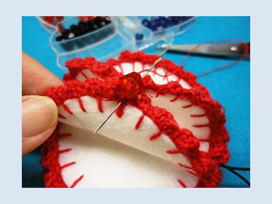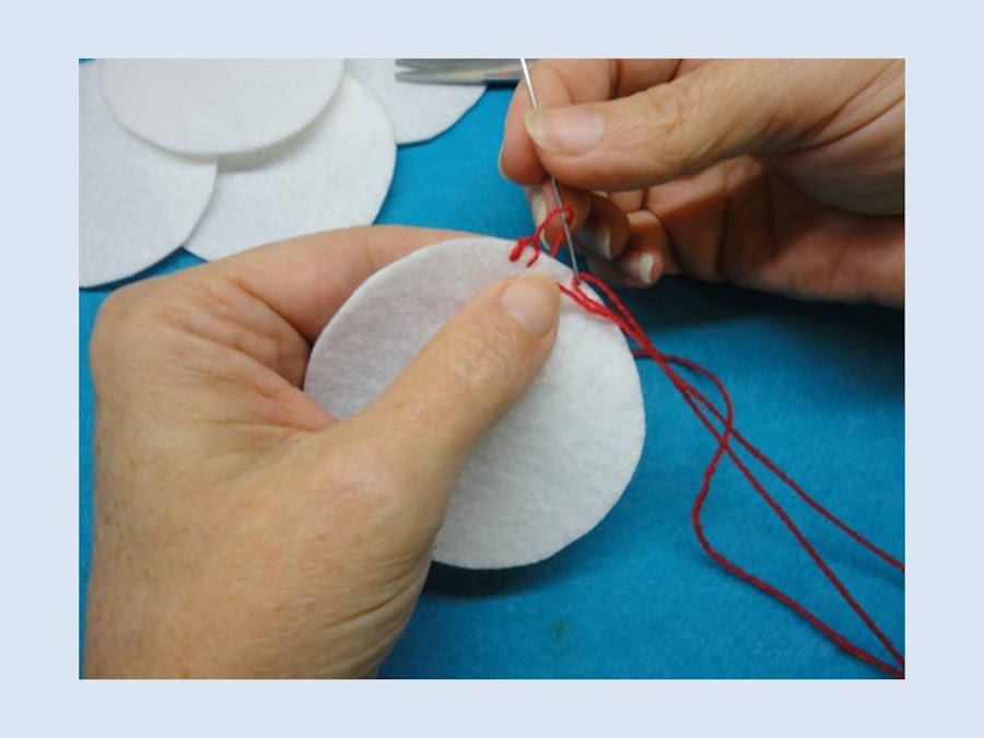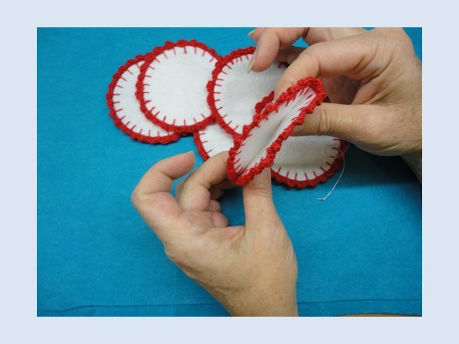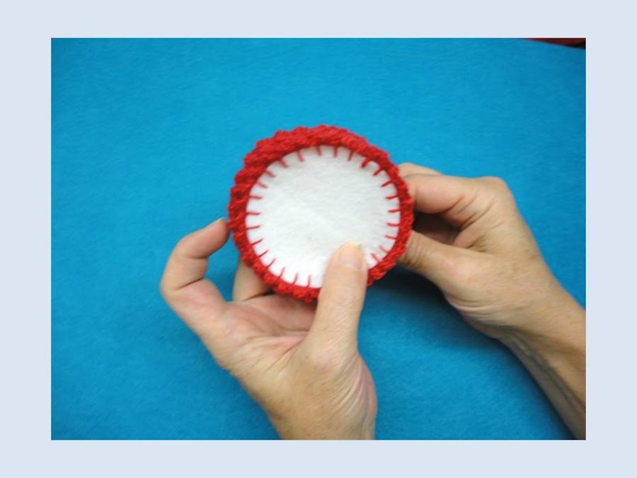 Realizad esta vuelta de crochet en todos los círculos de fieltro.
