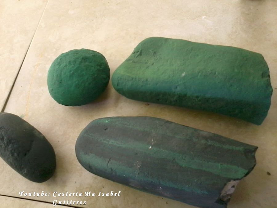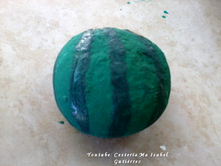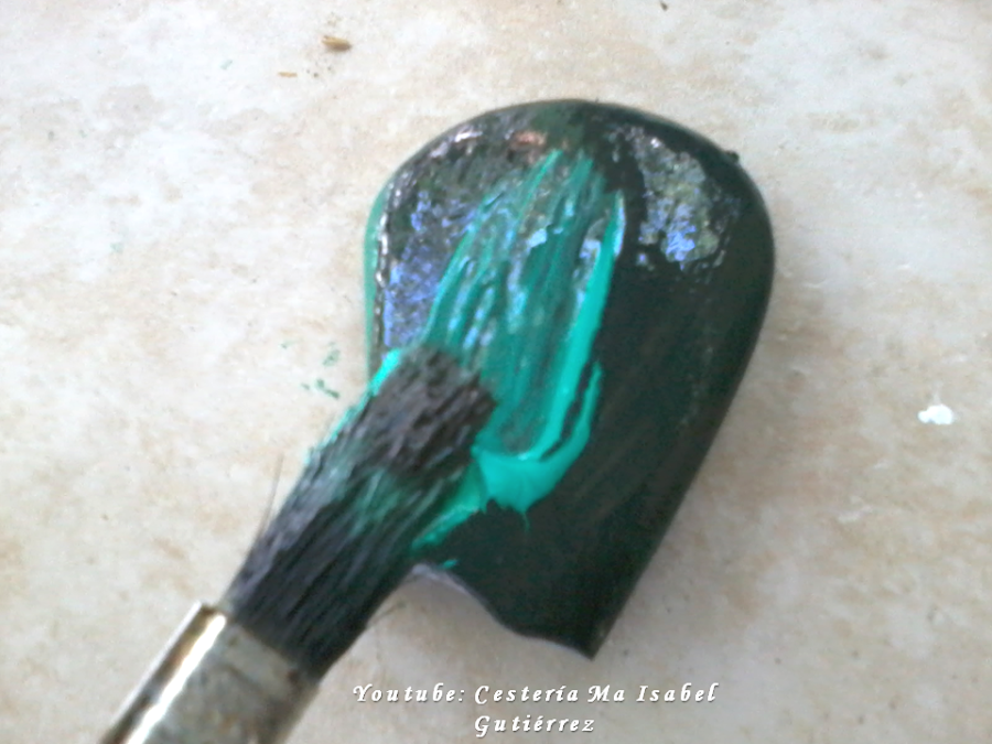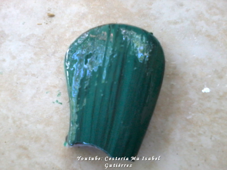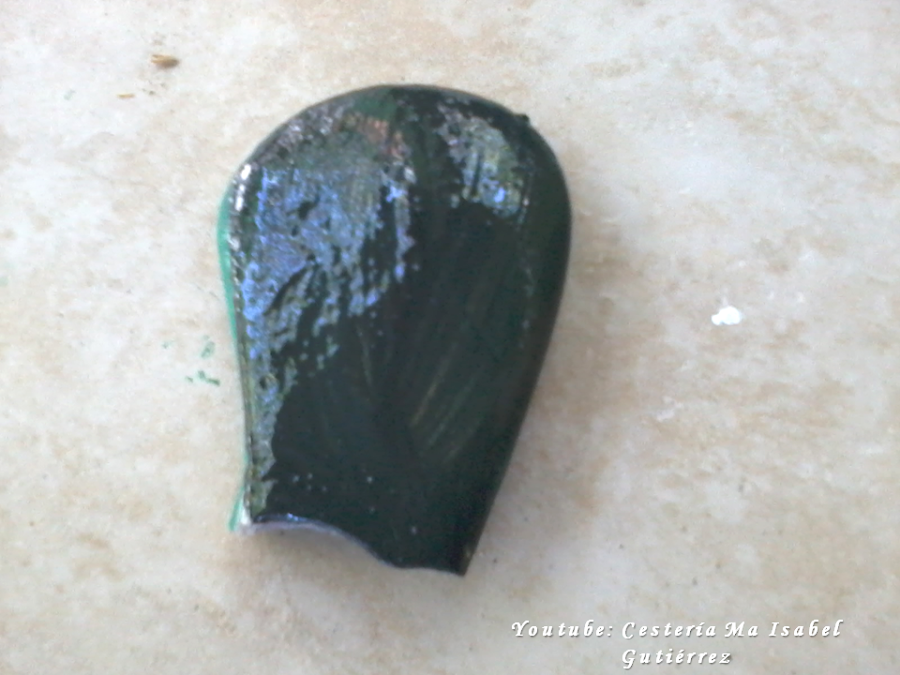 Sin dejar que seque la pintura negra, ponemos una capa de pintura verde claro encima, las pinturas se mezclarán para crear un tono de verde obscuro... y según nuestro gusto, ponemos mas verde claro o negro. Dejamos secar.