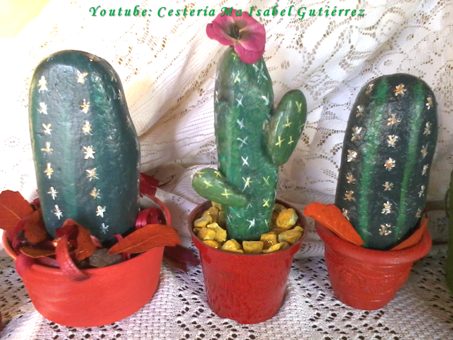 También podemos decorar con flores e inclusive, pegar pequeñas piedras a los lados a modo de brazos del cactus, si lo haces, te recomiendo pegarlos con silicón frío. Y listo ! ya tenemos nuestros lindos cactus para lucirlos en nuestro hogar. Si te ha gustado mi trabajo, te pido que me ayudes a difundir el reciclaje compartiendo mis trabajos. Hasta la próxima !