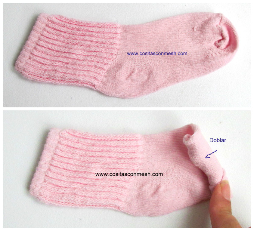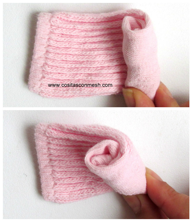 2.-Desde la puntita del calcetín, vamos enrollándolo.