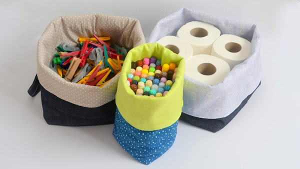 En el tutorial de hoy te enseño a hacer estas prácticas cestas de tela para organizar todo lo que quieras en casa.Yo he hecho tres cestas en tamaños diferentes y las he utilizado para poner las pinzas de la ropa, los rollos de papel higiénico de repuesto en el baño y mis rotuladores. Tengo pendiente hacer más para organizar materiales de costura y de manualidades. Sólo tienes que cambiar las medidas para adaptarlas a lo que quieras poner en ellas. ¡Es muy fácil!