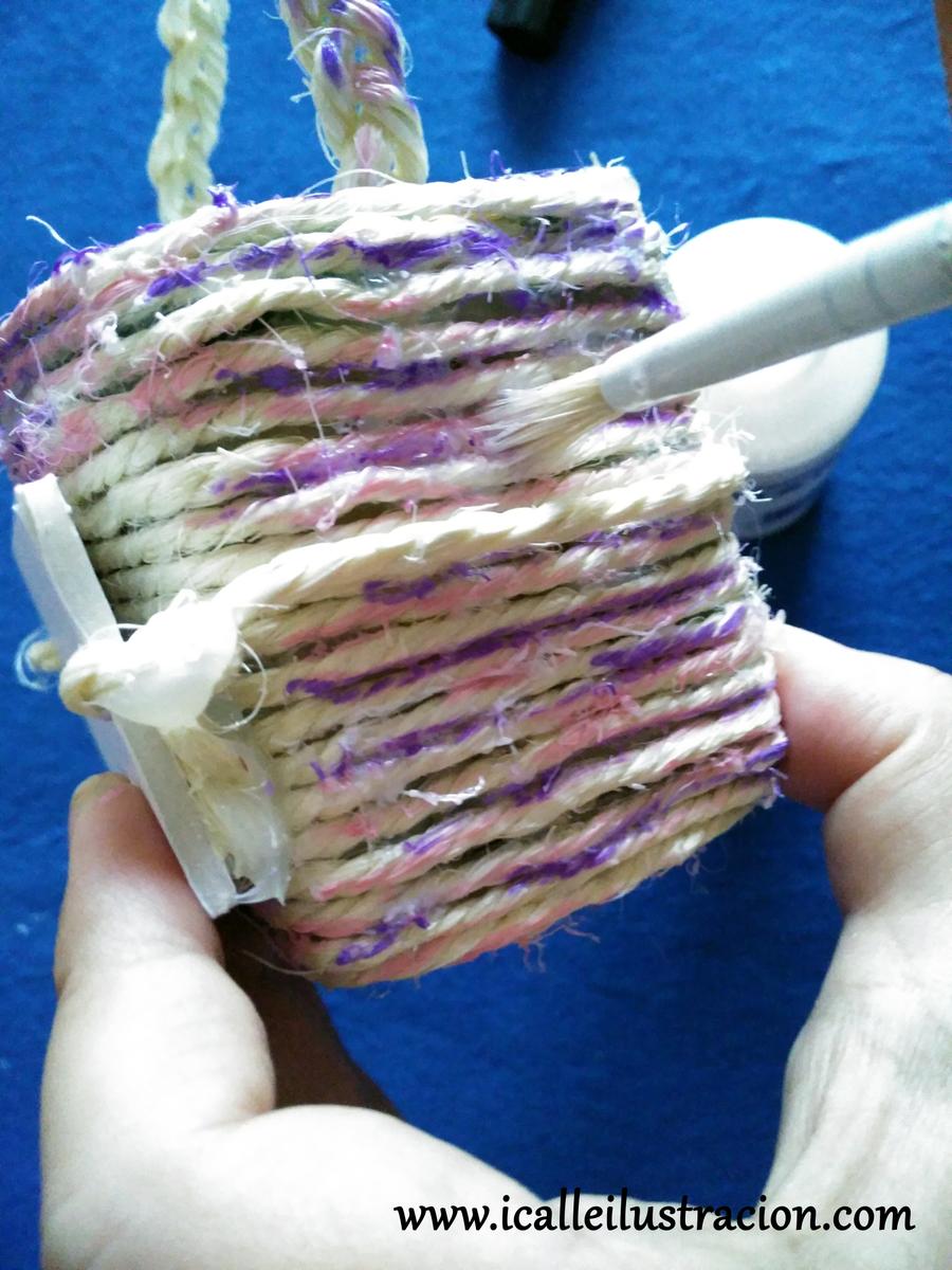 Pasamos la cuerda, solo en uno de los extremos y hacemos un nudo. Fijamos con un poco de silicona caliente.