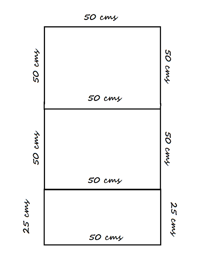 3.- Encaramos derechos de los cuadrados de 50X50 cms, dejando libre el cuadrado de 25X50 cms. (mirar esquema superior)