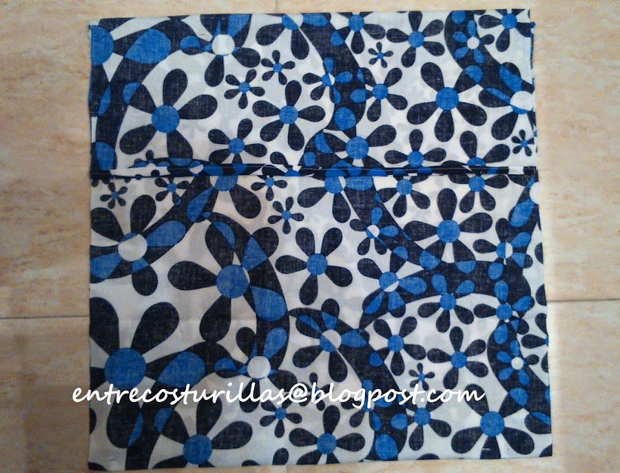 4.- Ahora doblamos el cuadrado que ha quedado libre (25X50cms) como si fuera un sobre.