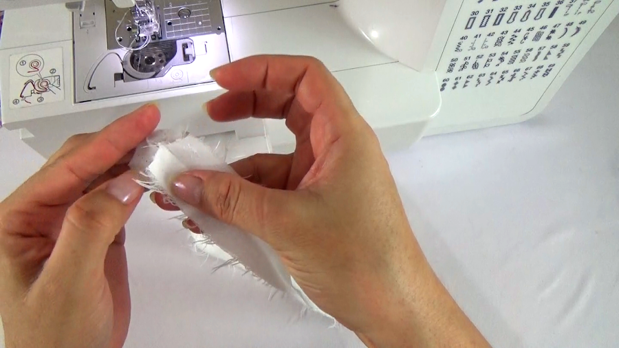Unimos los extremos de la cinta elástica con una costura a mano y cerramos la abertura con una costura de 0.5mm.