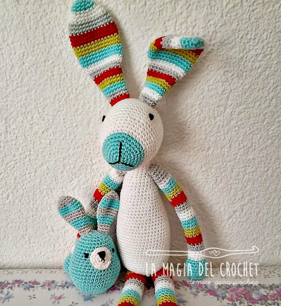 Aqui a Alejo le hice una aplicación de tela en las orejas, la cabeza la hice blanca completamente, y el cuerpo coloradisimo. Tambien hice una jirafa que la pueden ver en este link:http://dghlamagiadelcrochet.blogspot.ch/2013/11/raffa-la-jirafa.html