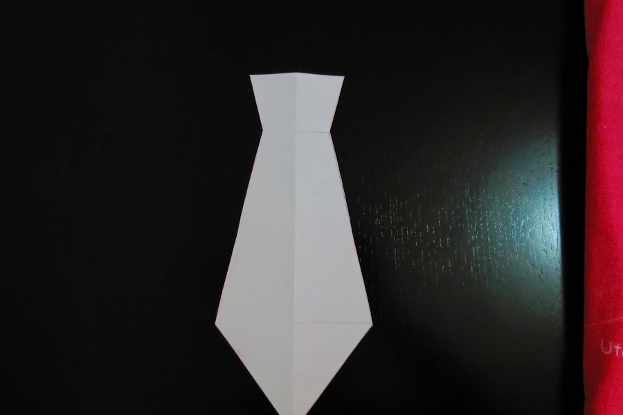 Comenzaremos dibujando la mitad de la corbata sobre un folio, doblamos un folio por el lado largo, y dibujamos la mitad de la corbata, de esa manera cuando recortemos, nos quedará simetrica.Este punto es un poco a ojivirí, porque yo la hice a mano alzada.
