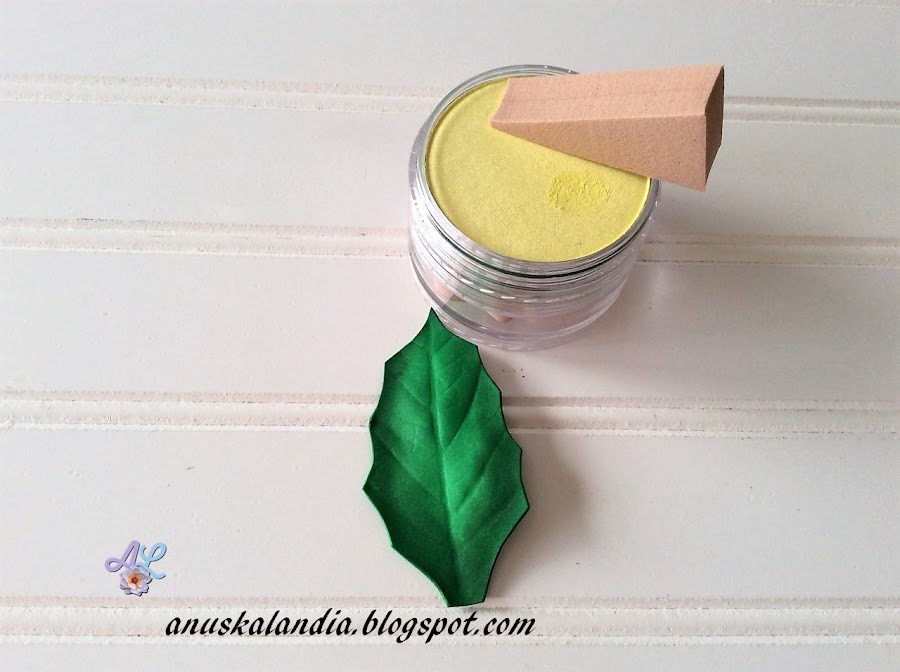9.- Hacemos lo mismo con las hojas, solo que en esta ocasión, pintamos desde abajo, los laterales, hasta llegar a la punta superior y dejaremos en el centro una zona más clara sin pintar. Con esto conseguiremos luminosidad en dicha hoja.