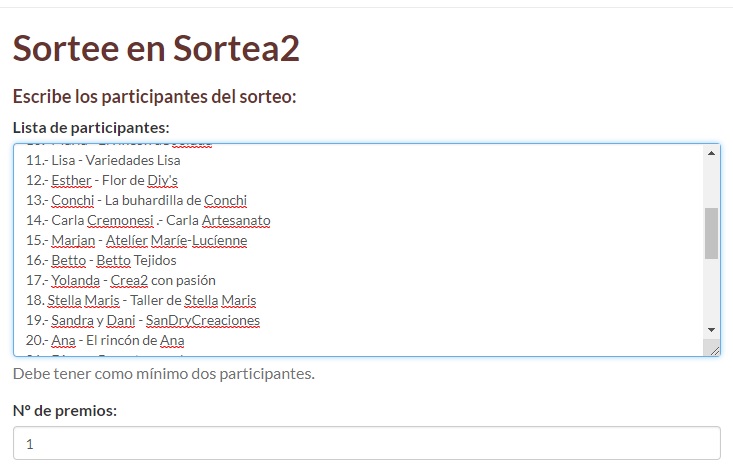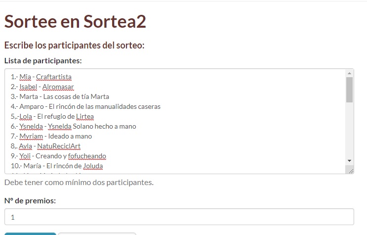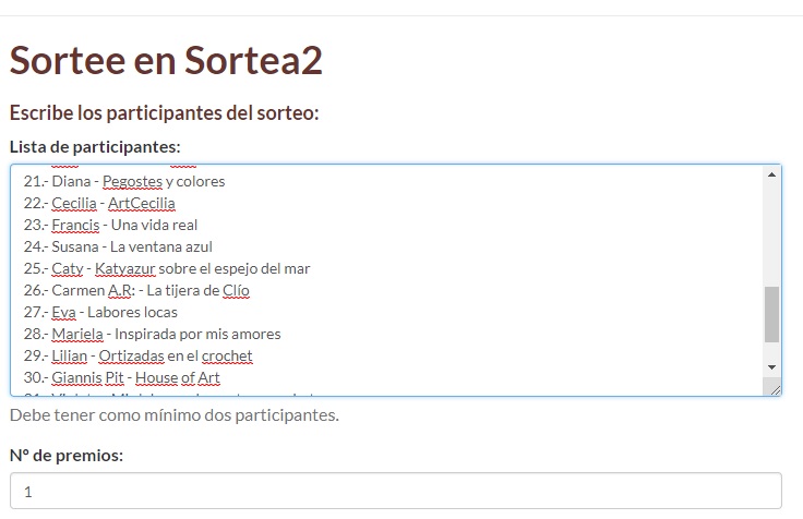 Os pongo las capturas de pantalla del Sortea2, en las cuales podéis comprobar que estáis todas. Las 32 participantes.
