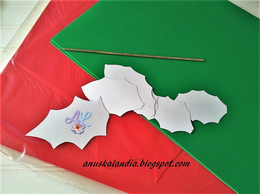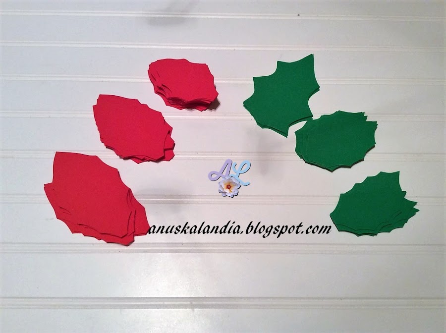 12.- Vamos a empezar a montar las flores. Para esta corona, haremos una poinsettia grande y dos pequeñas. Lo primero es hacer los pistilos. Te lo expliqué hace unas semanas en esta entrada donde te enseñaba a hacer otra poinsettía en papel. CÓMO HACER PISTILOS POINSETTIA.
