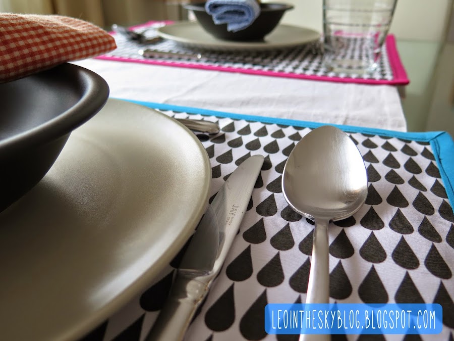 Luego una vez llegué a casa me sobrevino la duda..., ¿de verdad lo iba a utilizar como paño de cocina? por un momento me imaginé el paño colgando al lado del fregadero y me pareció hermoso...tan hermoso que no podía dejarlo ahí, tenía que hacer algo con él..., entonces rebuscando en mi mente me acordé de un episodio de este programa en el que hacían unos individuales cortando en dos un trapo de cocina, eso sí en el programa creo que no cosían nada, lo iban pegando todo con pegamento especial para tela..., humm.., no sé igual es mi experiencia pero me pareció que ese pegamento no iba a aguantar los frecuentes lavados de un mantel..., así que preferí coser una cinta bies en un color que contrastase con mi paño tan monocromático, está claro que a todo le tengo que añadir colorines que si no, no estoy a gusto...
