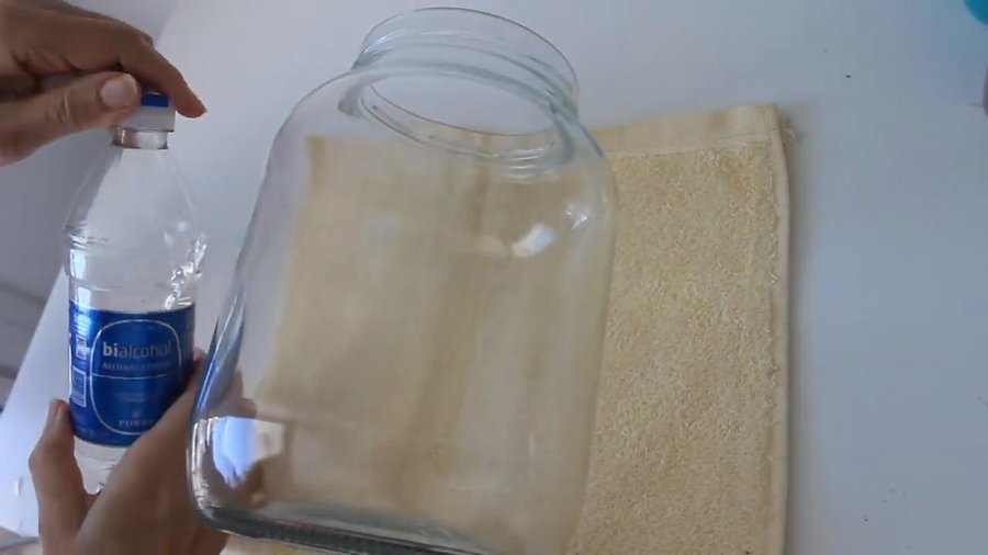 Para comenzar necesitaremos un frasco de vidrio o plástico del tamaño de nuestra preferencia que lavaremos y luego limpiaremos muy bien con un algodón embebido en alcohol etílico (del que tenemos en el botiquín de casa para limpiar las heridas).