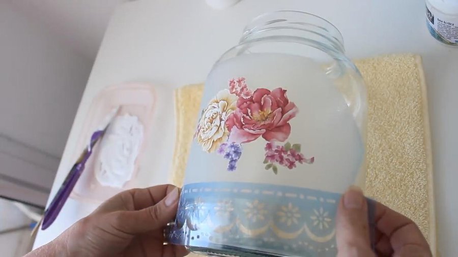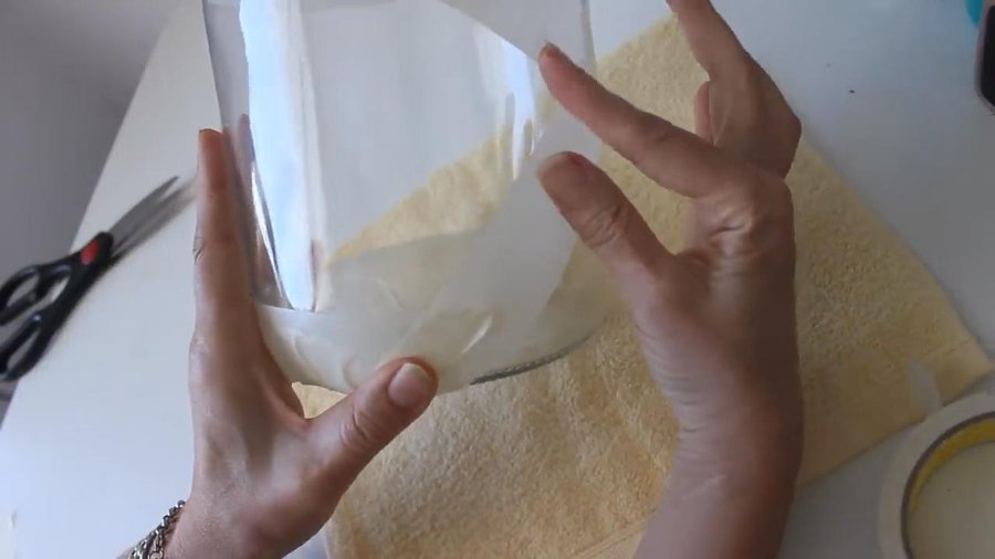 y para pegarla sobre el esmerilado vamos a utilizar adhesivo vinílico escolar o cola blanca sin diluir.