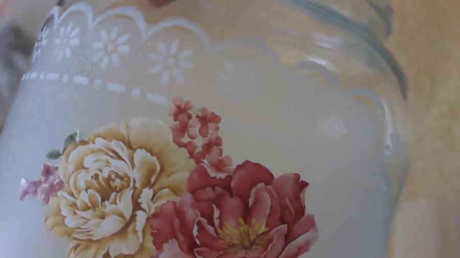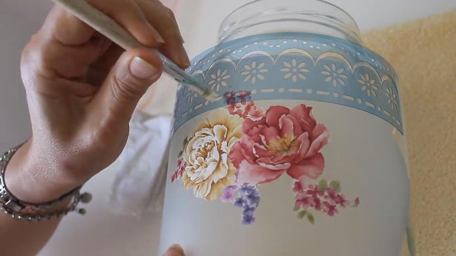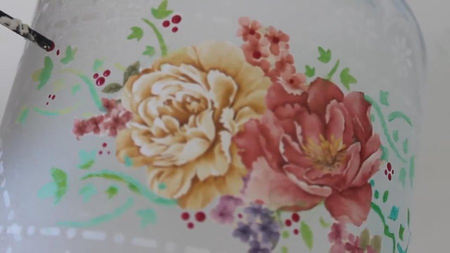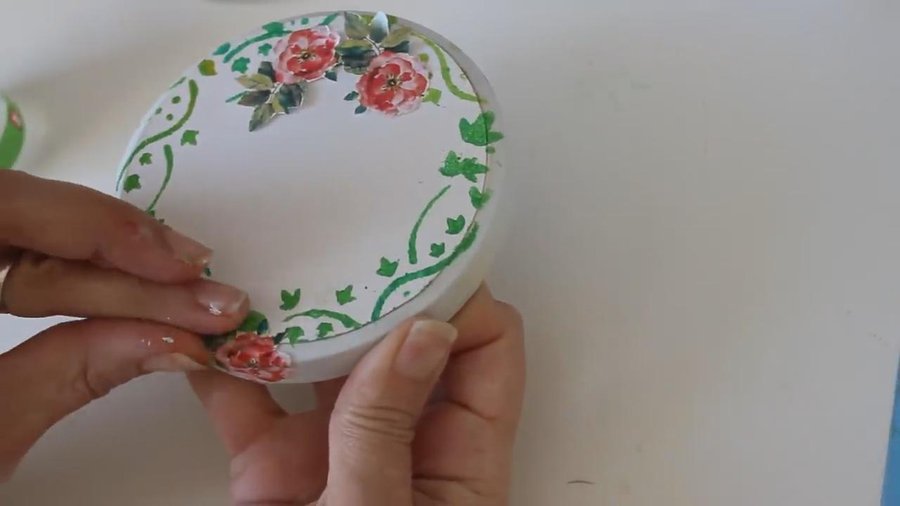 y con el cabo del pincel haremos puntos de colores al tono a modo de pequeñas flores.