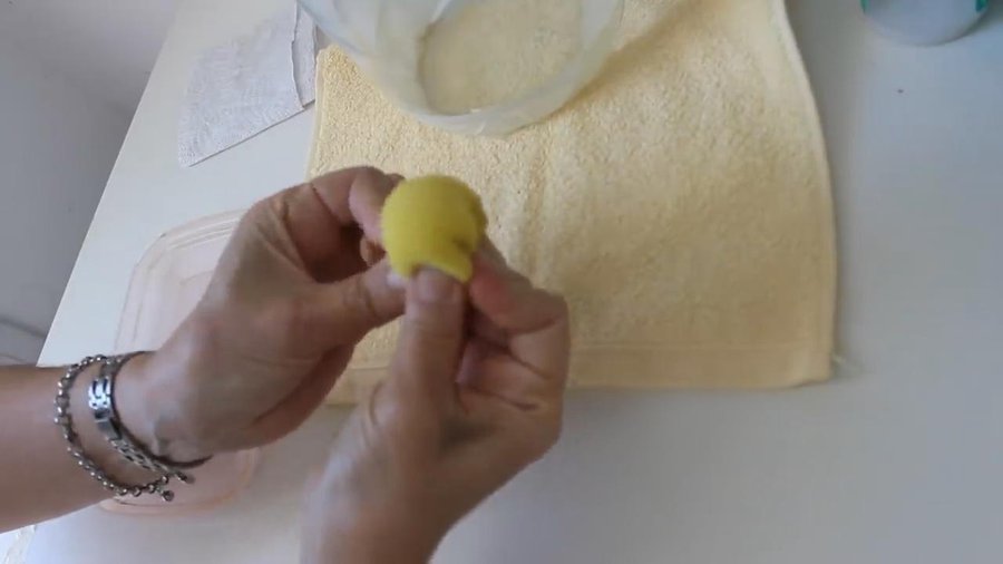 y para poder aplicarlo tomaremos una esponja que redondearemos de esta manera para que no deje marcas rectas cuando coloquemos el barniz (si tienen pueden utilizar un aplicador o ponceador)