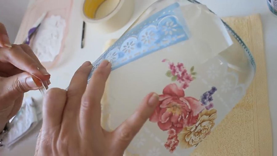 Para hacer la decoración, primero delimitaremos la zona en la que vamos a trabajar con cinta de pintor o de carrocero.