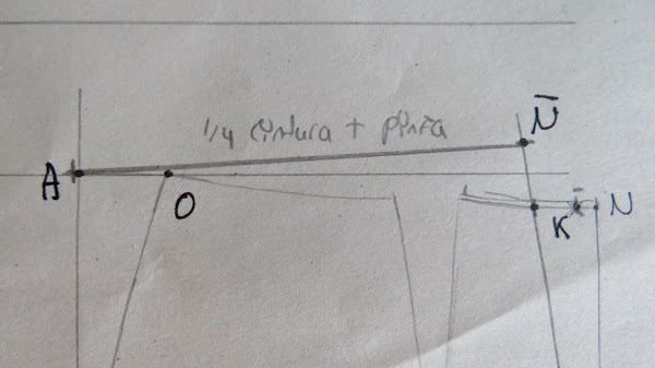 N-O: 1/4 parte de contorno de cintura más el aumento de la pinza (3 cms)