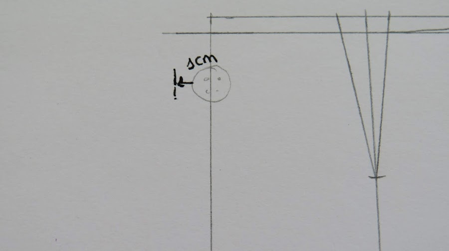 Para deducir la medida del cruce, tomamos el botón que vamos a usar, y medimos 1 cm desde el contorno, como te muestro en la imagen