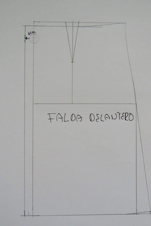 En este caso estoy usando el delantero, ya que estoy haciendo el patrón para una falda con botonadura delantera, pero si quieres, puedes hacerla en la espalda, el procedimiento es el mismo