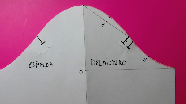 Lo marcamos por detrás en la sisa espalda, ya que para hacer el recorrido que hicimos con el delantero, pero en la espalda, tendremos que poner la manga de la cara opuesta