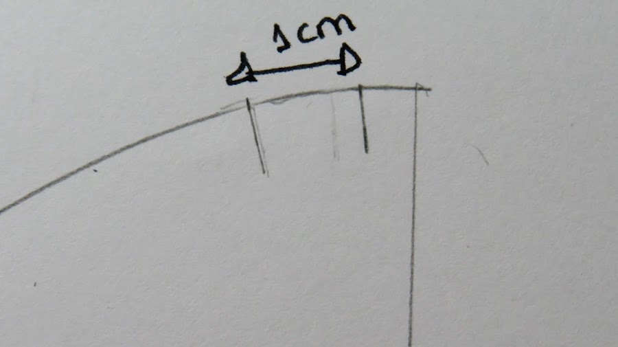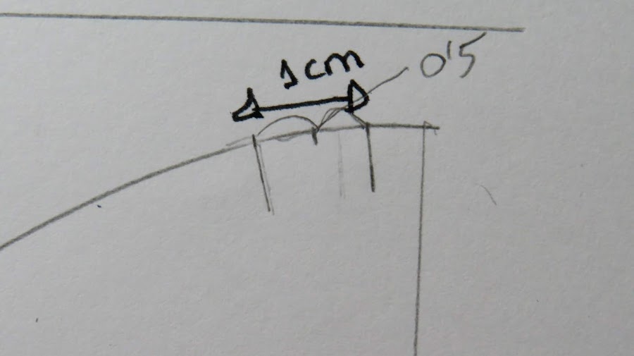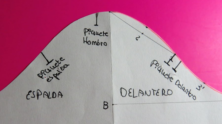 En la sisa delantera, a 1 cm del piquete inicial, dibujamos otro. Esto es para distinguir la sisa delantera de la espalda, en la delantera ponemos 2 piquetes, y en la espalda, solo uno.