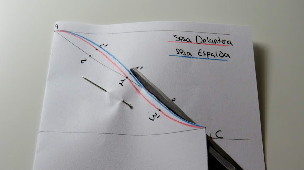 Primero cortamos por la línea azul, es decir por la sisa espalda