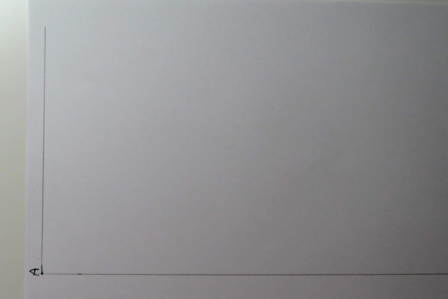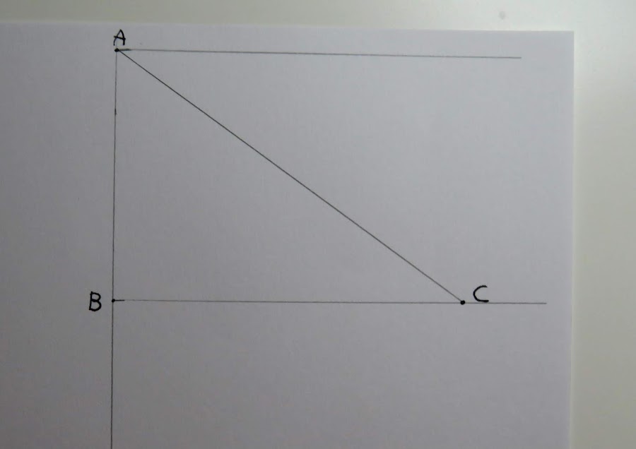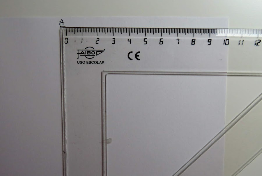 Con la escuadra, apoyada en la línea inicial, trazamos una línea horizontal desde A