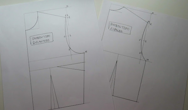 Fíjate como el punto E1 de la sisa de espalda, queda casi igual que el delantero, esto llevado a una escala real, puede ser una diferencia de 0,5 cm. Esto está bien hecho, ya que es la diferencia que suele dar. Ese poco que sobra es para embeber