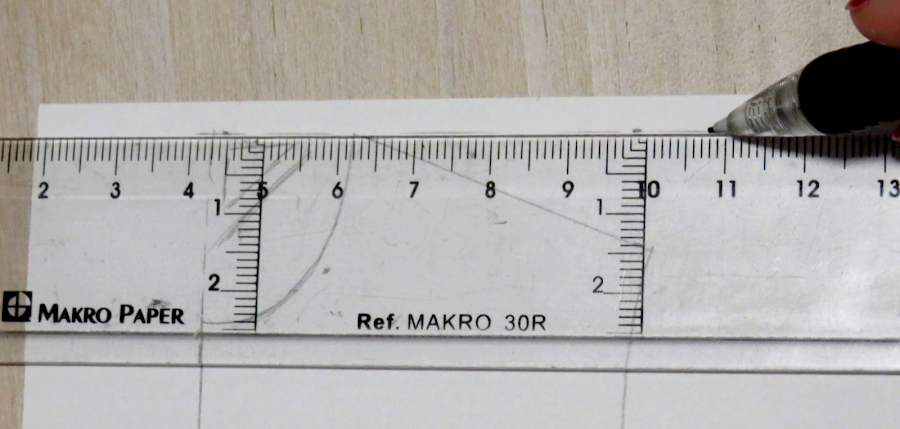 Con una regla o escuadra, prolongamos la línea horizontal superior