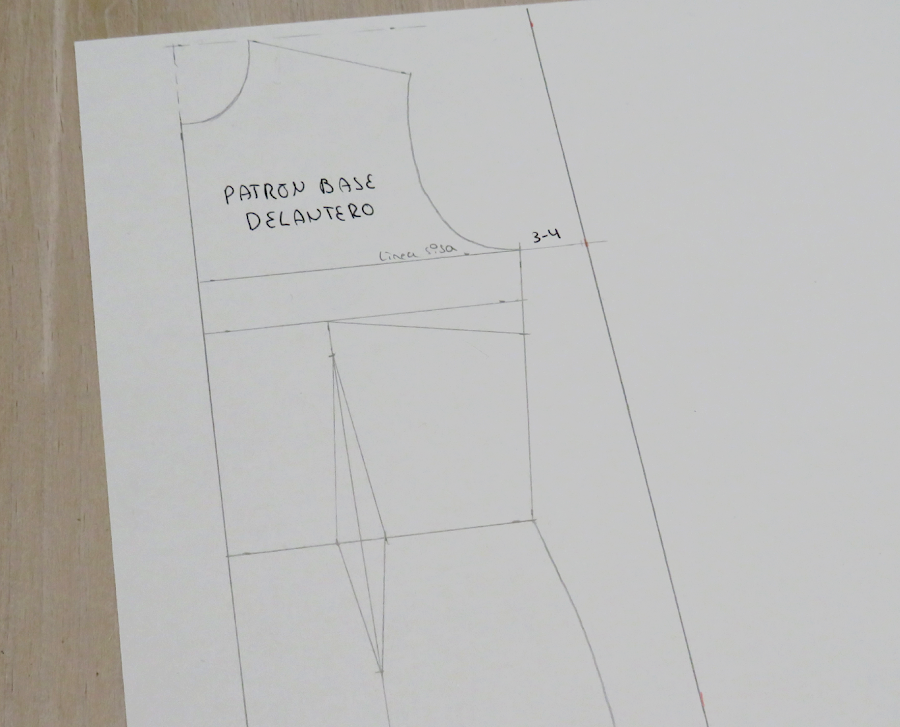 Antes de nada, te recomiendo que sepas cómo hacer el patrón base delantero, que es el que utilizaré en este caso, así reconocerás ciertas líneas con las que trabajaré.