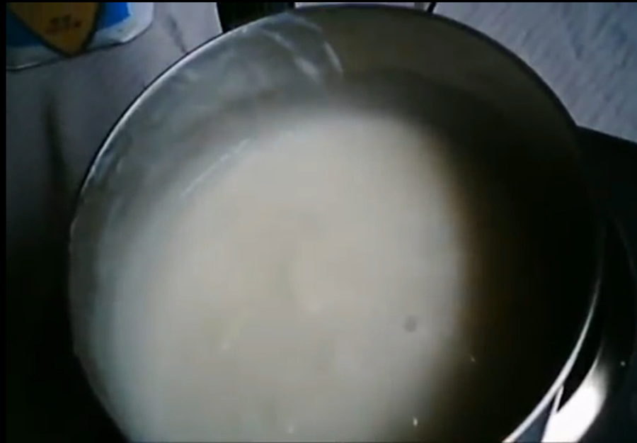 poner en la olla la media taza de harina, en el bol y poner una taza y media de agua y mesclar la haina con el agua