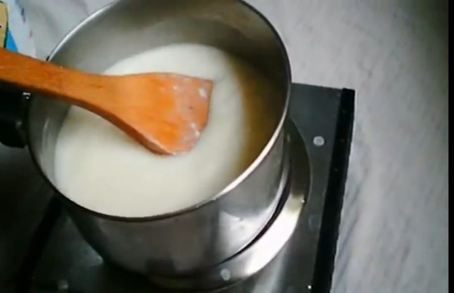 baja la llama del fuego y no dejes de mover la mezcla hasta que se ponga espesa