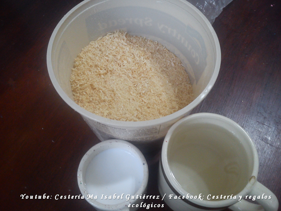 Para hacer dos esferas de regular tamaño necesitamos tres tazas de aserrín, una taza de agua y tres cuartos de taza de pegamento o cola blanca...