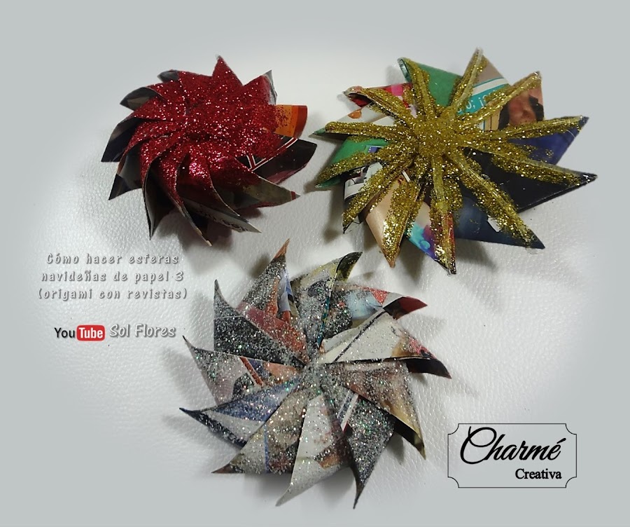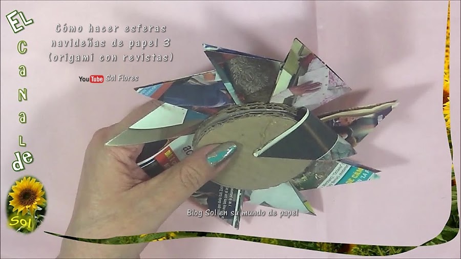 Cómo hacer esferas navideñas de papel 3 (origami con revistas)