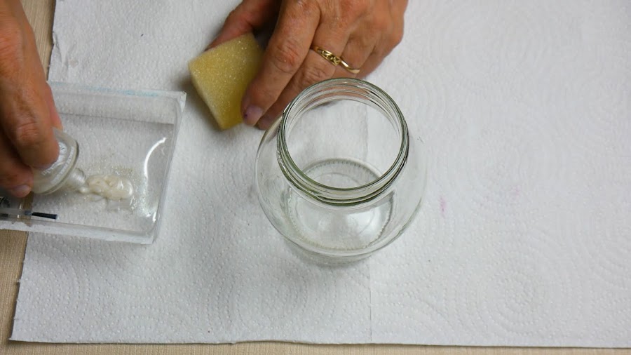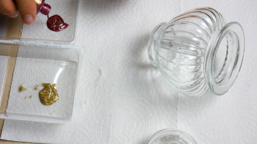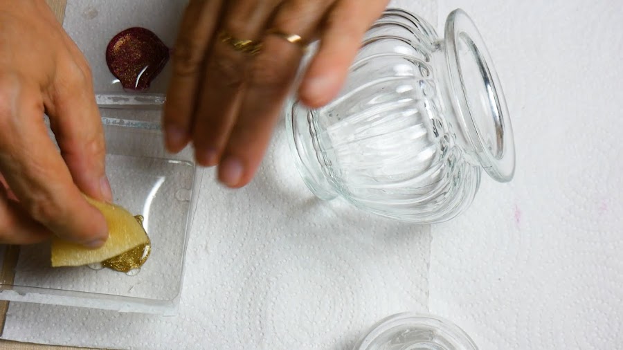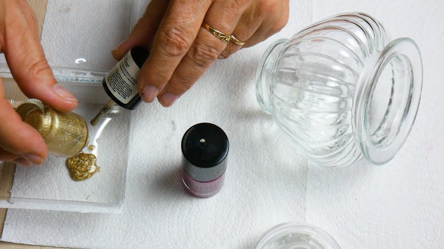 A este frasco lo pinte solo con este dorado con brillos, incluida su tapa.