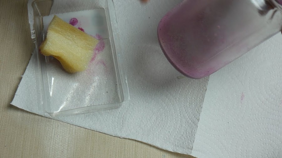 Aplico directamente en la esponja el color más claro y comienzo a esponjear alrededor, cargando esmalte cada vez que lo necesito directamente del frasco.