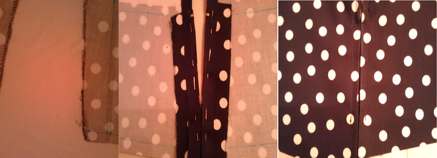 2.- Lo primero que vamos a coser es la cremallera, la he puesto en uno de los costado de la falda. Primero sobrehilamos las costuras, pasamos costura ZIG ZAG, ancho puntada 5 y longitud puntada 1, para que no se deshilache la tela. Luego marcamos con la plancha justos por la linea de costado por donde va a ir la cremallera y la cogemos con alfileres, como se ve en la 2ª foto, y por último cosemos y planchamos para asentar costuras, nos tiene que quedar como aparece en la última foto.