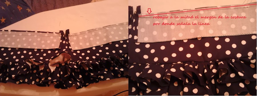 IMPORTANTE: Dejar sin coser unos 2 cms. en cada extremos de los volantes o desde el costado sin coser.