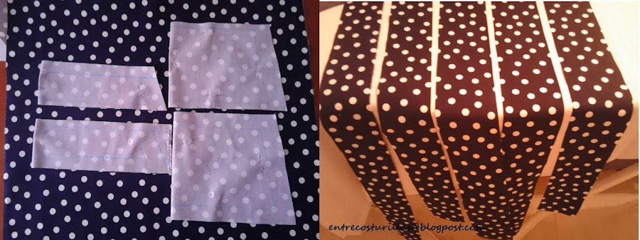 Compramos 0.50 metros con 1.5 metros de ancho de tela popelina de lunares, lisa, con estampados ( como más os guste). Cortamos los patrones: