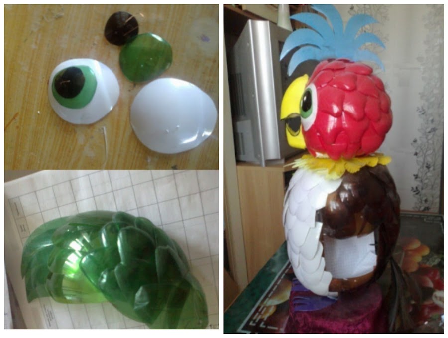Paso a paso cómo hacer la figura de un loro con botellas de plástico