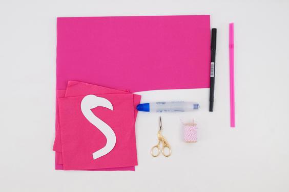 3-Atar la servilleta en el medio con el hilo grueso para sostener. Si te gustaría colgar los flamencos, no cortar el exceso de hilo.