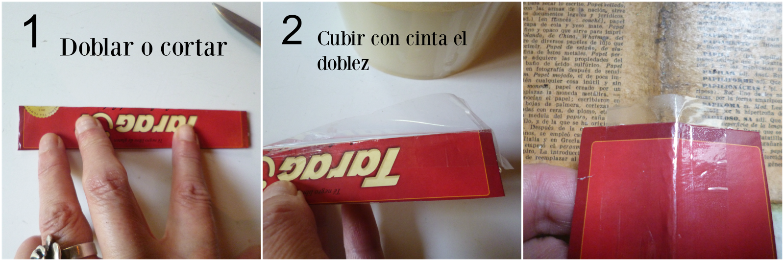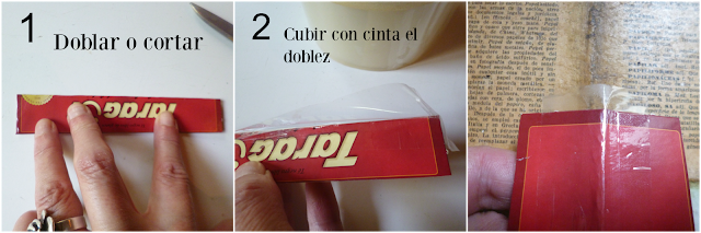 2-Cubrir el doblez con cinta adhesiva.Esto se hace para que al poner el pegamento no se queden los flecos pegados al cartón.