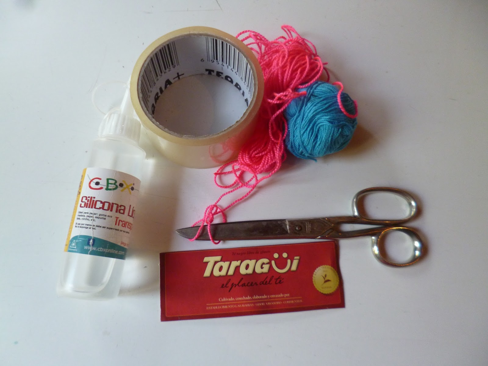 3-Pegar un hilo un poco más largo que el cartón justo sobre el doblez,usando mucha cantidad de silicona.