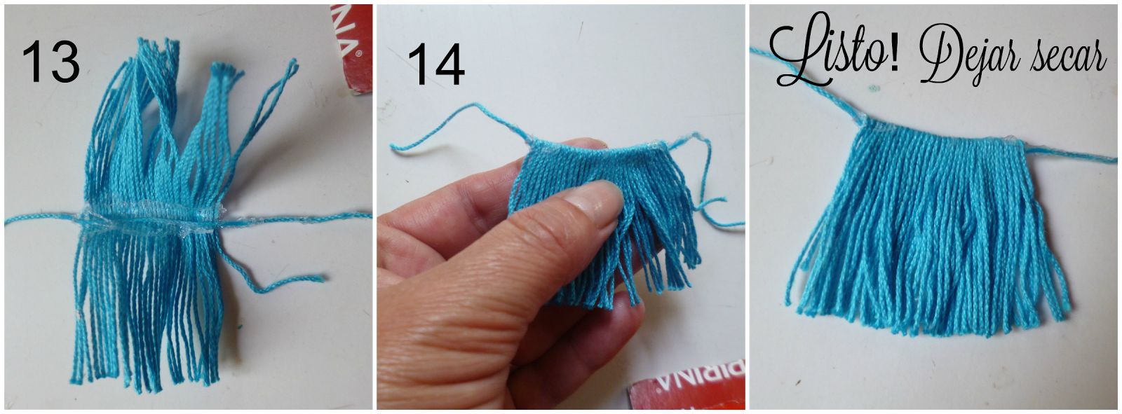 11 y 12-Despegar el hilo,esto se hace fácil por haber puesto la cinta adhesiva.