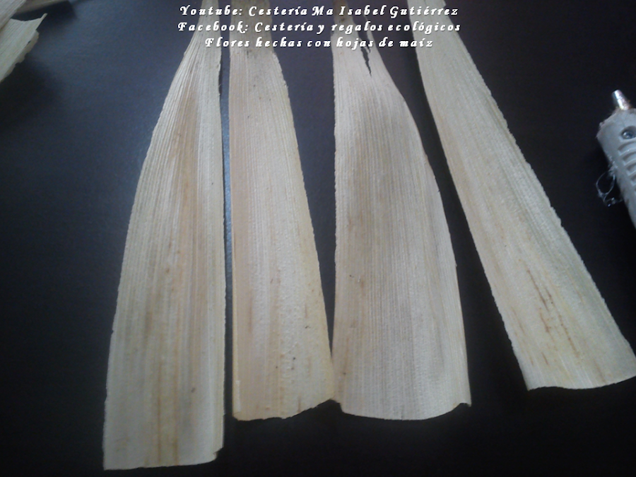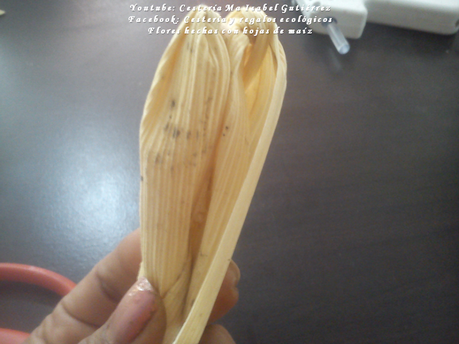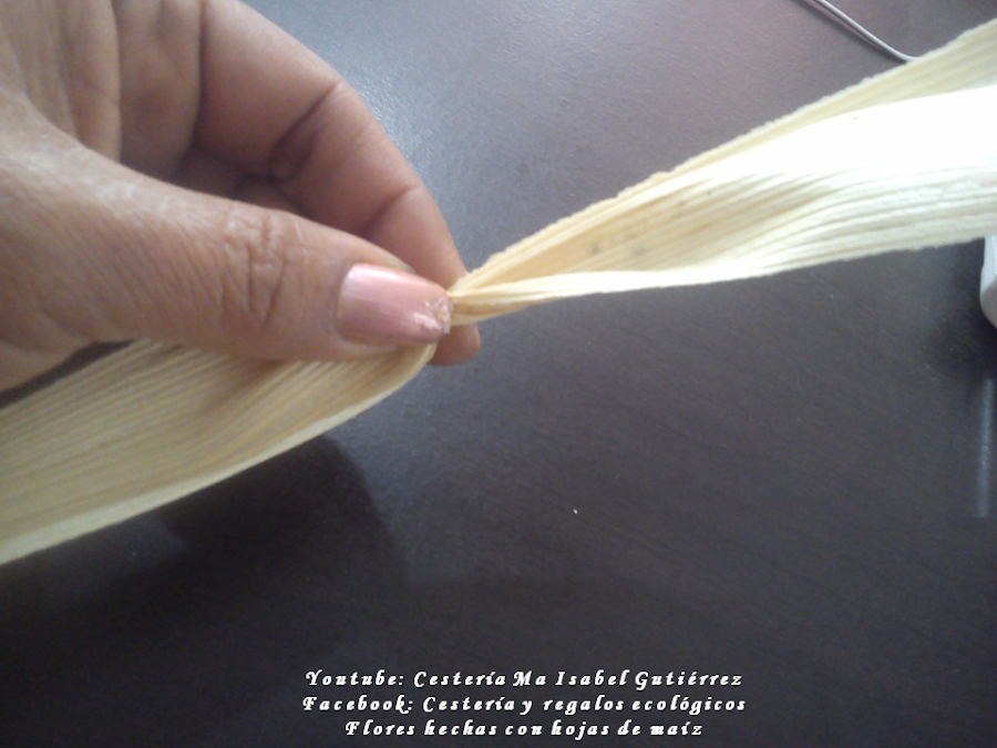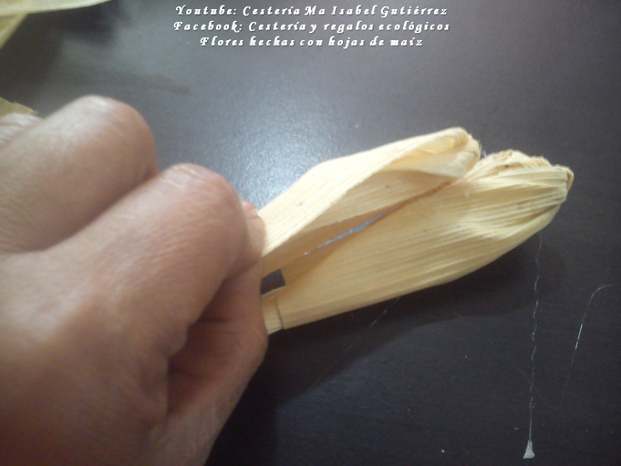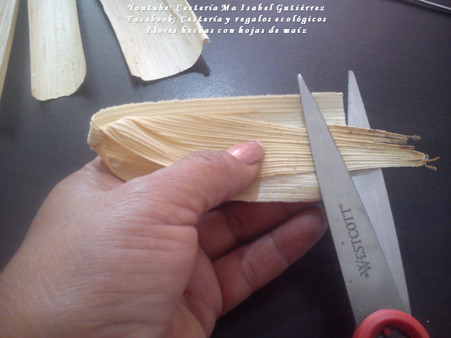 Aparte, cortamos las hojas de maíz a lo largo, dejando 5 cms., de ancho en la parte de abajo...