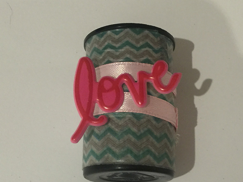 En este caso, yo la decoré con Washi Tape, cintas y un adhesivo.
