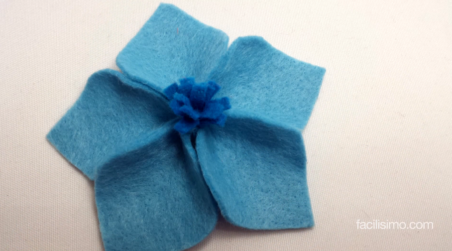 Lo primero que tienes que hacer es recortar la forma del pétalo sobre el papel para hacer un molde del cual sacarás cinco pétalos de fieltro. Debes coserlos por un extremo y añadir una espiral con flecos para hacer el centro de la flor. ¡Heidi nos lo explica con este vídeotutorial!