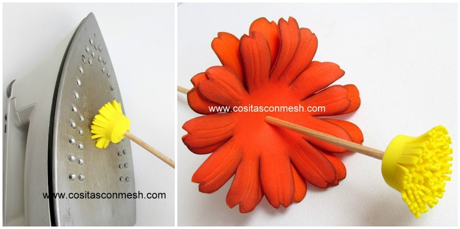 12.-Caliento mi plancha, y paso el centro de la flor para que quede con volumen, y con los dedos lo abro suavemente.